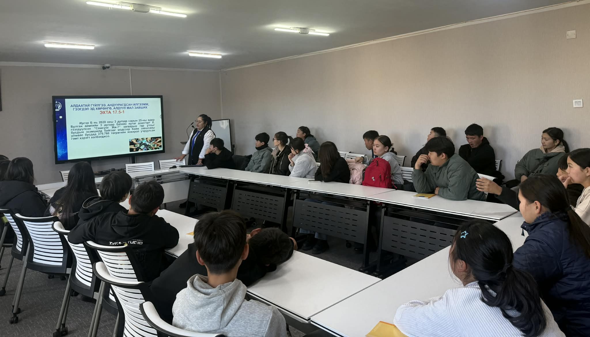 Булган аймгийн Эрүү, Иргэний хэргийн давж заалдах шатны шүүхийн шүүгч Л.Хишигдэлгэр нь эрх зүйч, хуульч мэргэжлийн тухай, шүүгчээр ажиллахын давуу тал, онцлогийн талаар мэдээлэл өгч, сурагчдын сонирхсон асуусан асуултад нээлттэй хариулж, харилцан яриаг өрнүүлж,